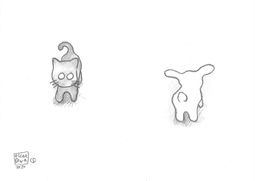 「envelope as a door」の第3弾として、大岩オスカールから、おなじみの"シャドウキャット"と"ライトラビット"のかわいらしいアニメーションが届きました。このアニメーションは20枚のドローイングで構成されています。1枚1枚の絵をつなげることで、ひとつの動きとなり、物語が生まれます。